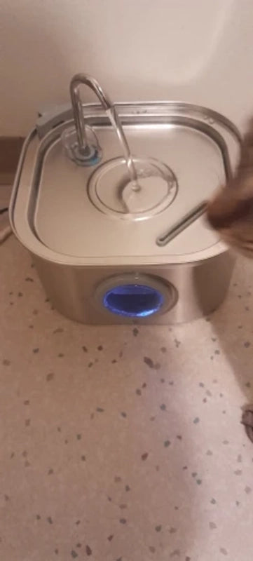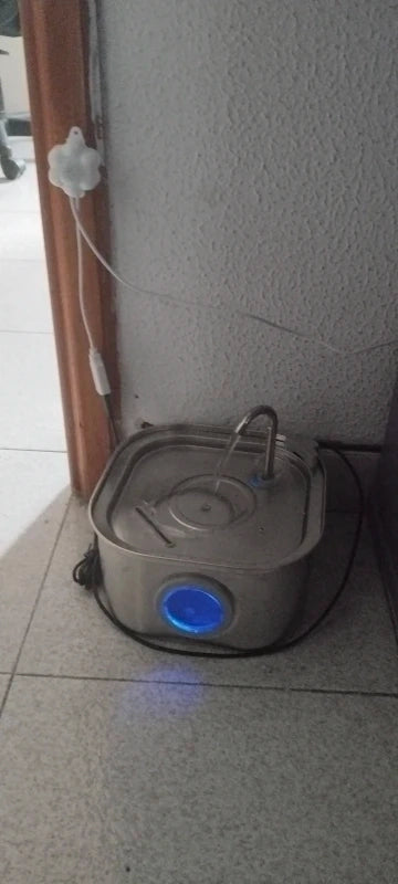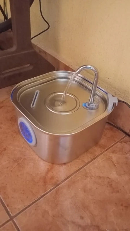 Su diseño elegante de acero inoxidable no solo embellece tu hogar, sino que su flujo continuo y luz LED azul animan a tu mascota a beber más, manteniendo una hidratación óptima y un bienestar superior.