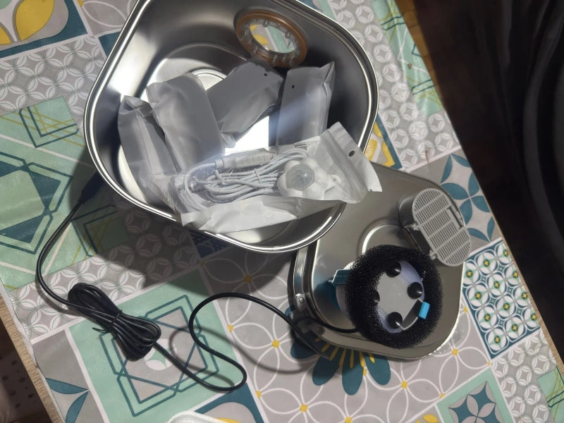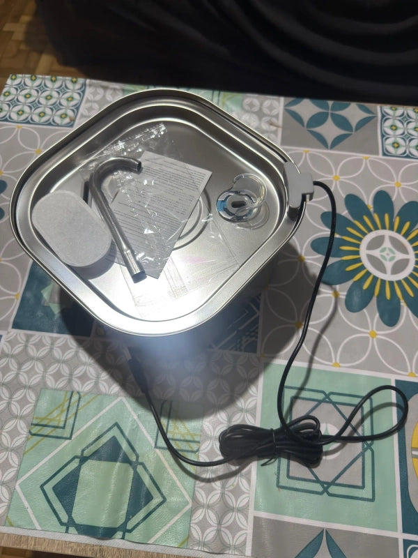 Tu mascota merece lo mejor. Nuestra fuente de acero inoxidable asegura agua siempre fresca, limpia y sin bacterias, manteniendo a tu amigo peludo sano y feliz con cada sorbo.